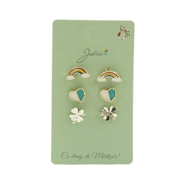 3 pár szivárvány, szív és lóhere fülbevaló szett