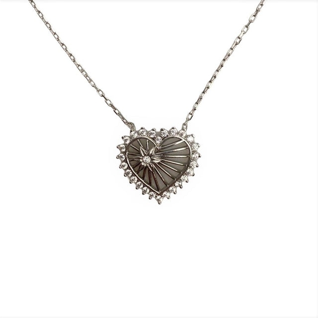 A "Szív" nyaklánc 925-ös ezüstből készült és ródiummal van bevonva az intenzívebb fény érdekében és az időbeli oxidáció megakadályozása érdekében.