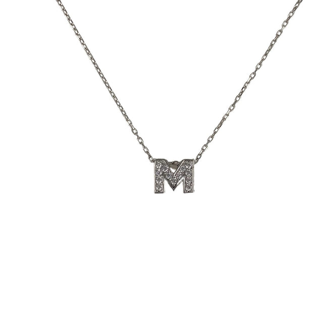 A "Litera M" nyaklánc 925-ös ezüstből készült és ródiummal van bevonva az intenzívebb fény érdekében és az időbeli oxidáció megakadályozása érdekében.