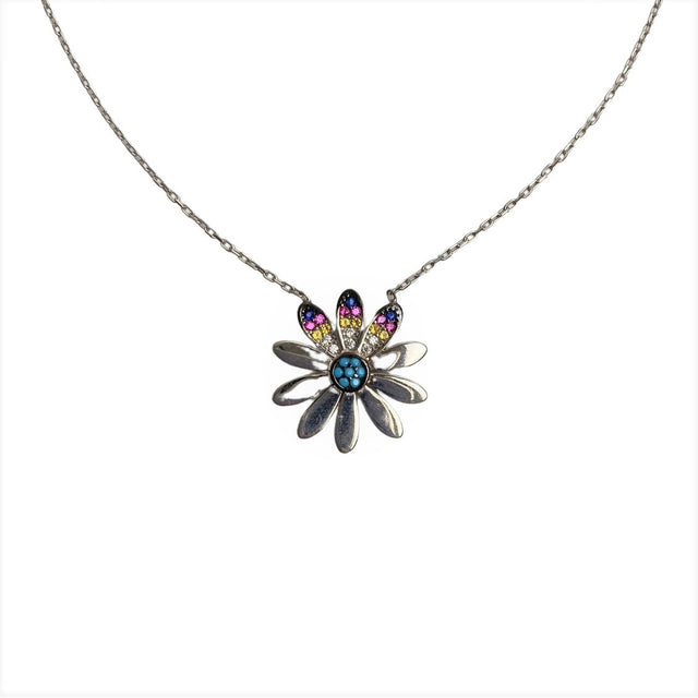 925 ezüst nyaklánc, százszorszép színes cirkóniákkal 41 cm