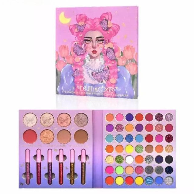 Sminkkészlet, Kevin&Coco paletta 53 szemhéjfestékkel, highlighter, korrektor és rúzsok,