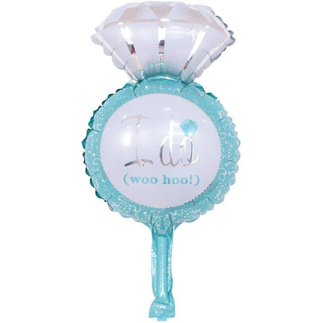 Fólia lufi, Mini Esküvői Figura, Eljegyzési Gyűrű Modell, Házassági Lánykérés Téma, 46x23 cm, Egyedi Csomagolás, Szalma Tartalmaz, Levegővel Vagy Héliummal Felfújható, Kék