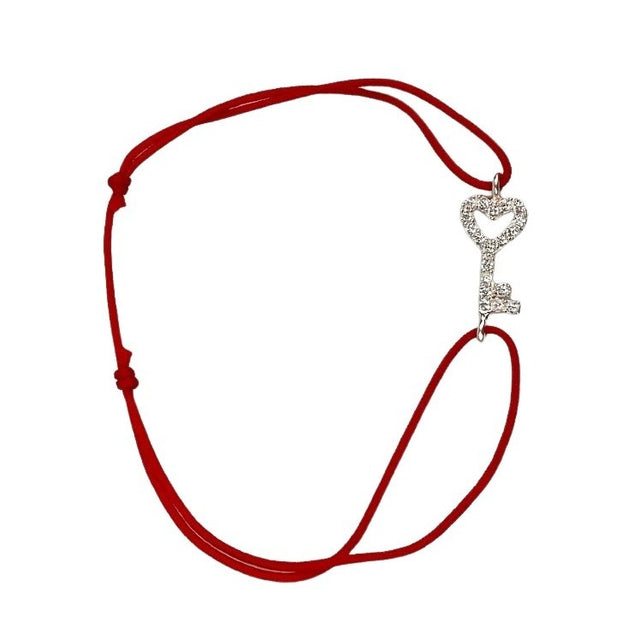 Állítható zsinóros karkötő, 925 ezüst, szív alakú kulcs, 0,8 G