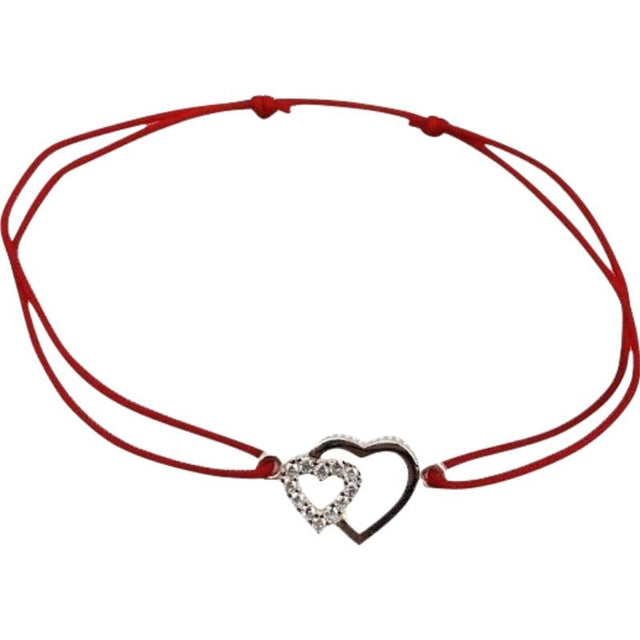 Állítható zsinóros karkötő, 925 ezüst, szomszédos szívek, ékszerdobozban, garanciajeggyel együtt kerül kiszállításra.