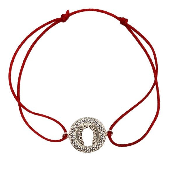 Állítható zsinóros karkötő, 925 ezüst, patkó alakú, kövekkel keretezett, jolie ezüst, 1 g