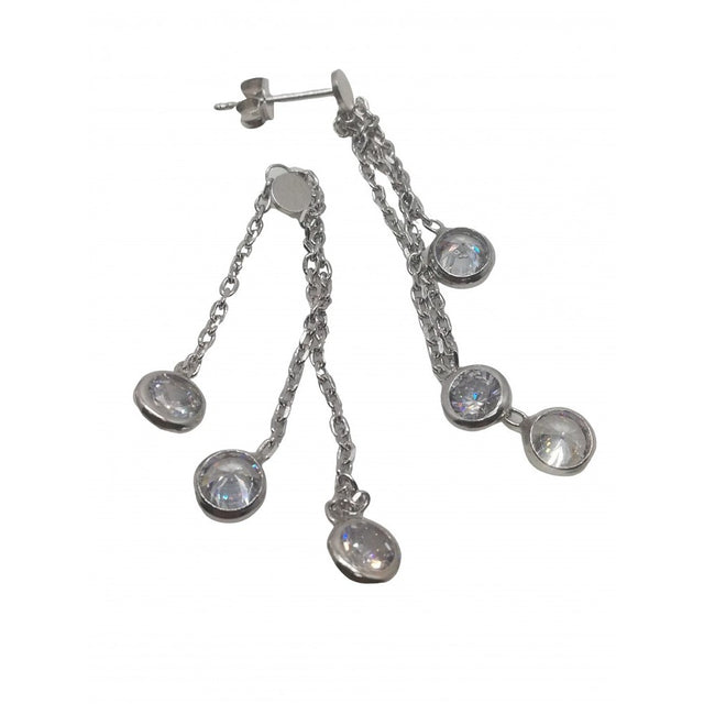 A hosszú, aszimmetrikus 925 ezüst fülbevalók kövekkel díszítve ékszerdobozban kerülnek szállításra, a garanciajeggyel együtt.