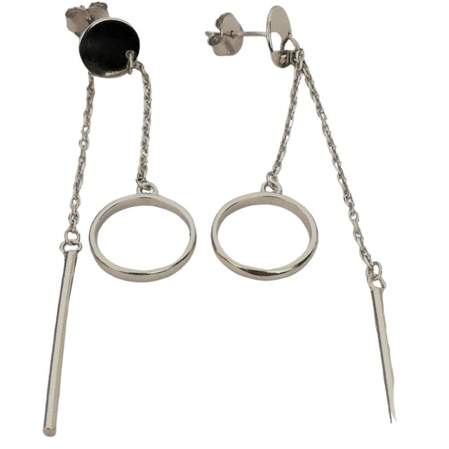 Hosszú 925 ezüst fülbevaló érmével, körrel és lánccal