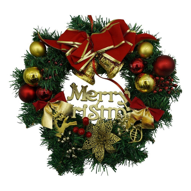 Karácsonyi koszorú ajtóra, piros/zöld, 40 cm, PVC, műbőr, díszített, beltéri/kültéri - Aranysárga Készleten van, amint újra elérhető lesz, azonnal szállítjuk.