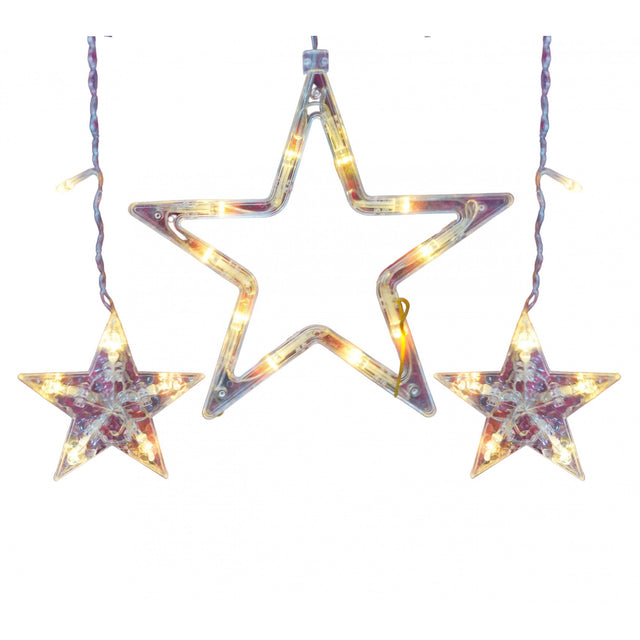 Karácsonyi installáció, 138 LED, függöny típusú, csillagokkal, -meleg, 2,5 m, beltéri/kültéri