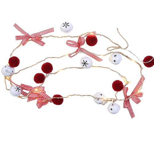 Karácsonyi elemes installáció, 2 méter, 20 csengő alakú LED és golyó - Meleg fehér Készleten van, amint újra elérhető lesz, azonnal szállítjuk.