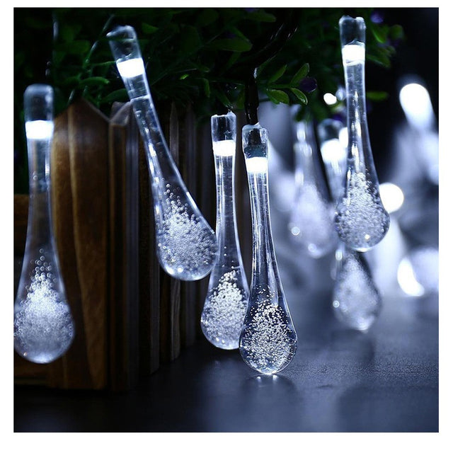 Karácsonyi installáció, vízcsepp típusú, 20 LED, 5 méter, menő, napenergia, fényérzékelő