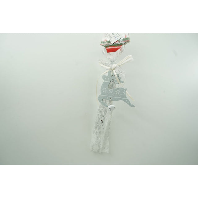 A rénszarvas fából készült, és egy csengő van hozzá rögzítve.