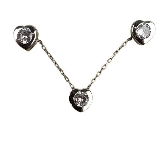 A 925-ös ezüst szív alakú készlet 925-ös ezüstből készült és ródiummal van bevonva az intenzívebb fényért és az időbeli oxidáció megakadályozásáért.