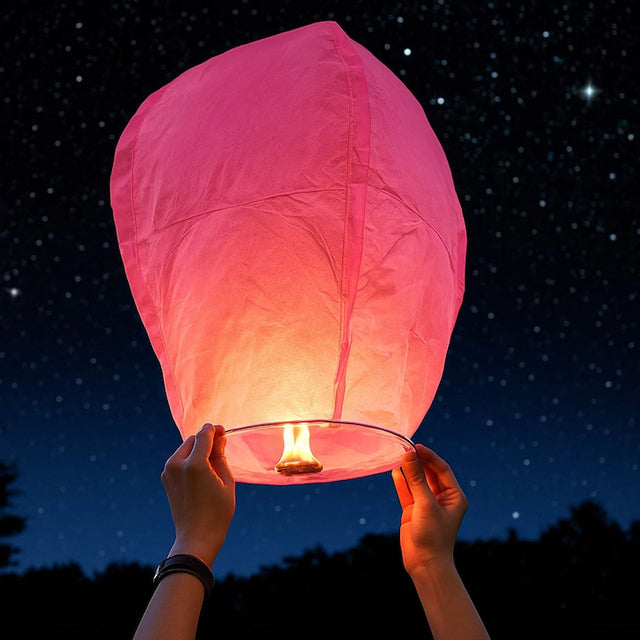 Adaugă un strop de magie și romantism evenimentelor tale cu lampionul zburător roz, 100% biodegradabil și ușor de folosit. Perfect pentru nunți, aniversări sau momente speciale în aer liber.