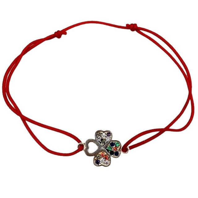Bratara Snur Reglabil, Argint 925, Trifoi Cu Zirconii Colorate, Jolie Silver, 0.8 G
