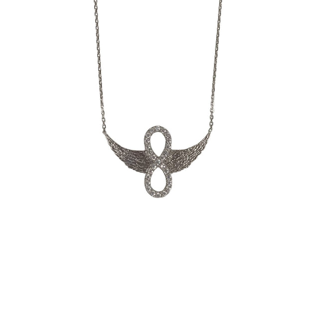 Colierul "Infinit cu aripi" este realizat din argint 925 si placat cu rodiu, pentru o stralucire mai intensa si pentru a nu se oxida in timp.