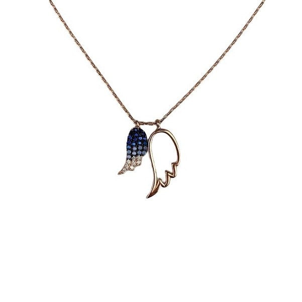 Colierul din Argint 925, Aripa Dubla cu Zirconii Multicolore Placat cu Aur Roz este realizat din argint 925 si placat cu aur roz.