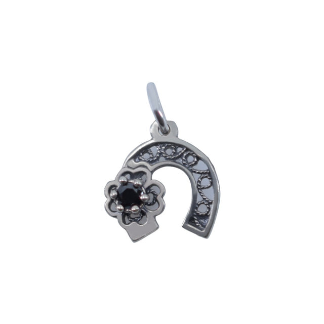 Pandantiv Din Argint 925 Potcoava Filigran Cu Trifoi Si Piatra