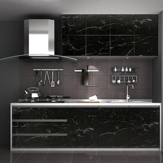 Cu Tapetul Autocolant Marmură Neagră, casa ta va străluci de eleganță și stil modern – totul printr-un proiect DIY simplu și accesibil!