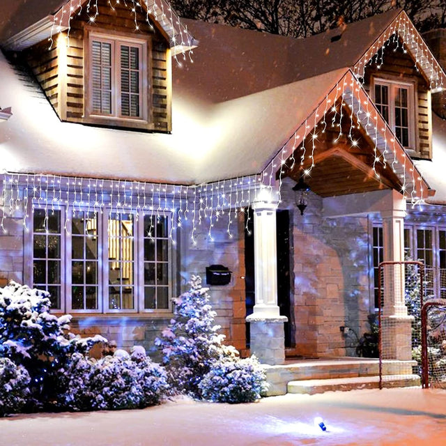 Instalatie Craciun, 6 M, 192 Led-Uri,Franjuri, Alb Rece, Flash, Transformator, Interconectabila, Prelungitor 3 M Inclus, Fir