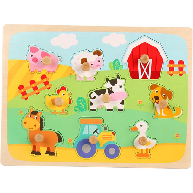 Puzzle Montessori din Lemn pentru Copii - Vivimall 0-3 Ani - Model Ferma
