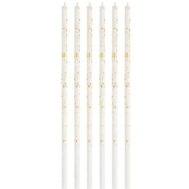 Set 6 Lumanari Lungi, Din Parafina, Happy Birthday, Alb/