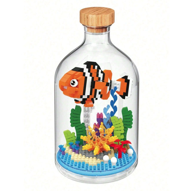 Set Constructie Peste Clown In Sticla Decorativa, Mini Piese Tip Pixel, Acvariu Decorativ Creativ Pentru Copii Si Adulti, Multicolor